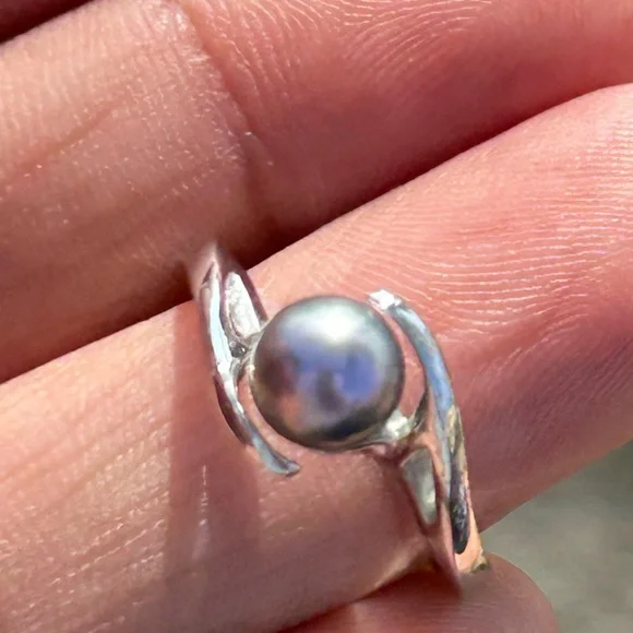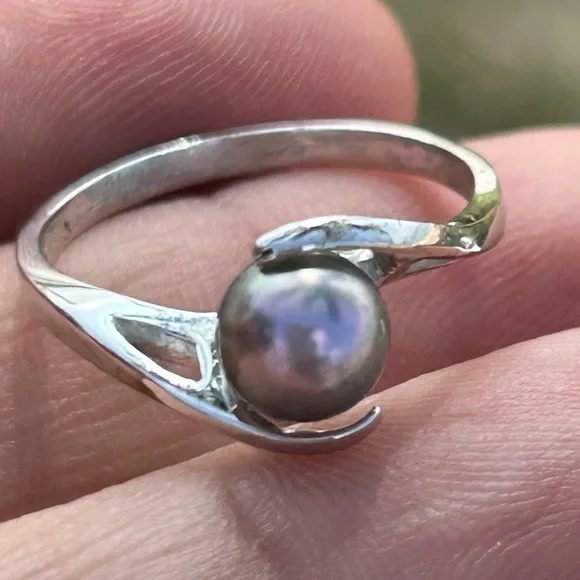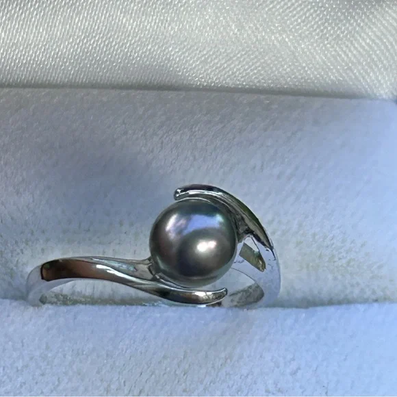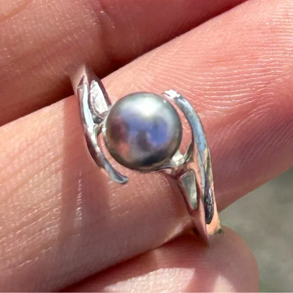 Vintage Edward Sultan Na Hoku 14k white Gold Round Cultured 6mm Pearl Ring Sz 7