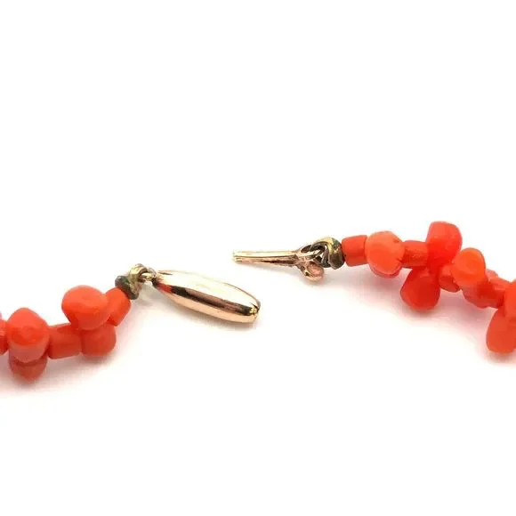 Vintage 10K Yellow Gold Irregular Red Coral Beaded Statement Necklace