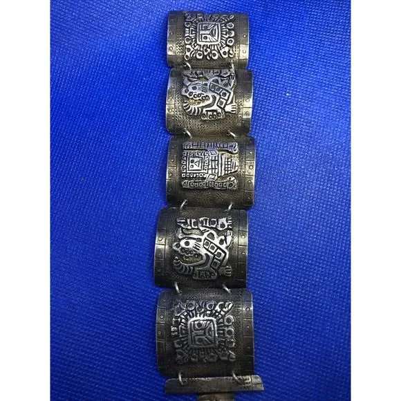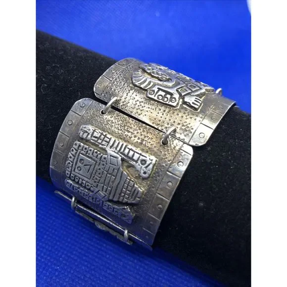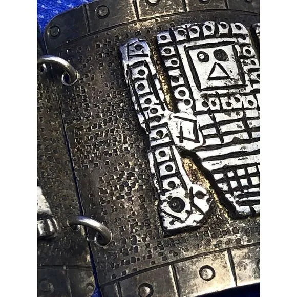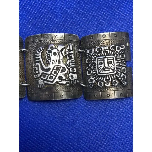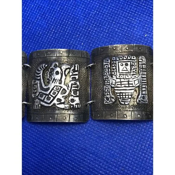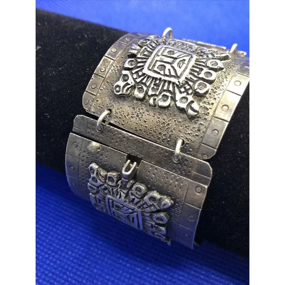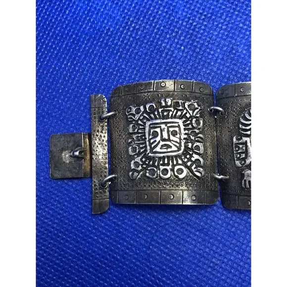 Vintage Native Peru 925 Sterling Silver Gods Statement Panel Bracelet