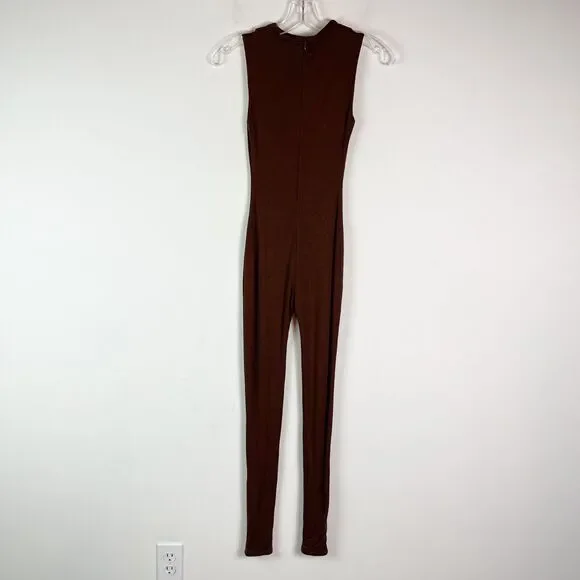 Naked Wardrobe NWOT Brown The NW Sleeveless Jumpsuit Size S