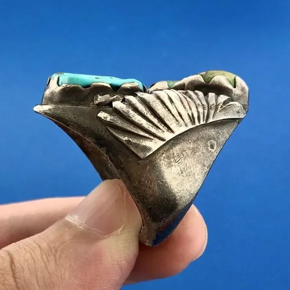 Navajo P Padilla Signed 925 Sterling Silver Chunky Green Blue Turquoise Ring