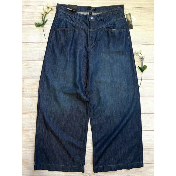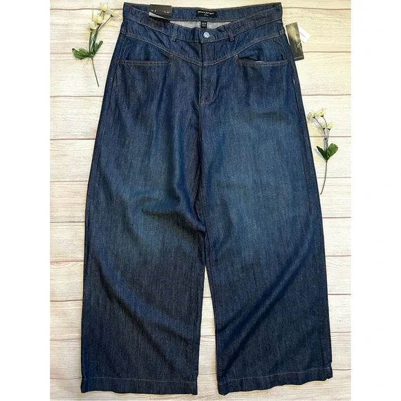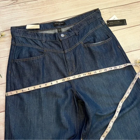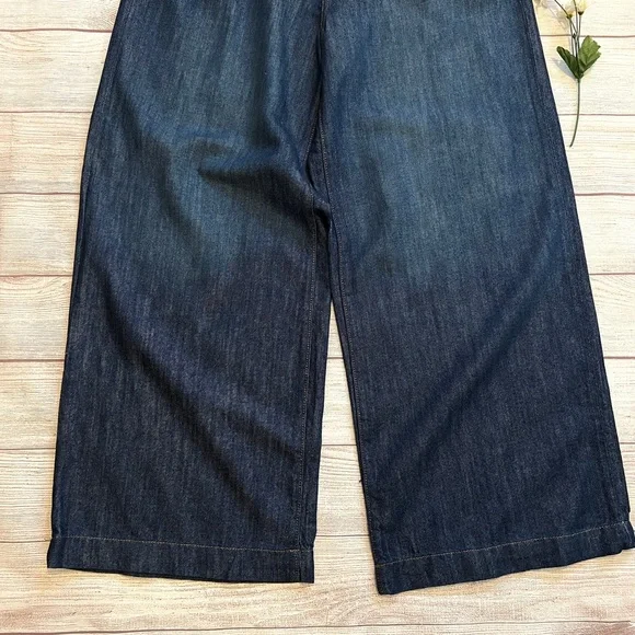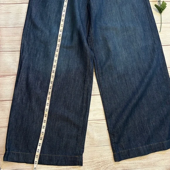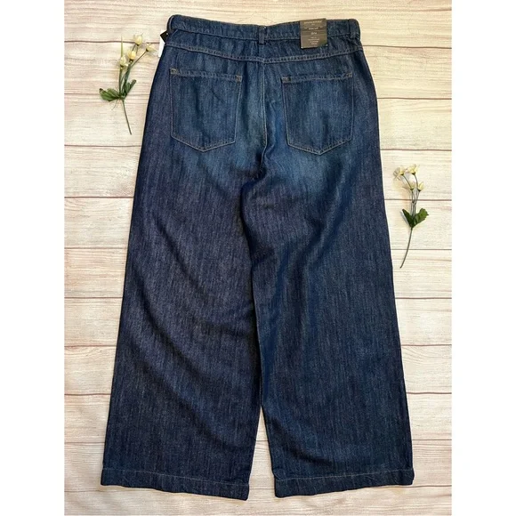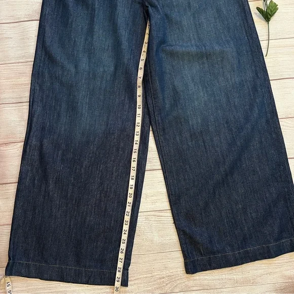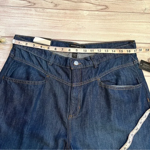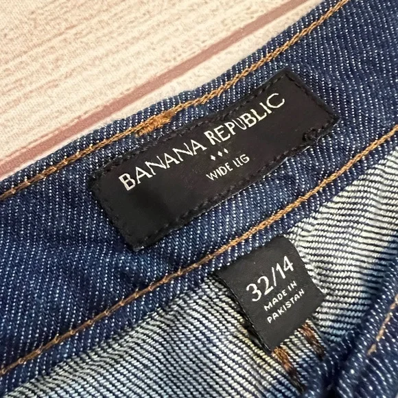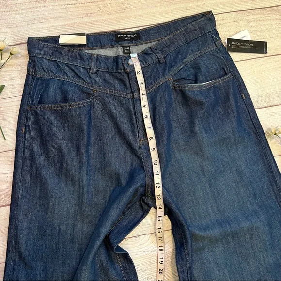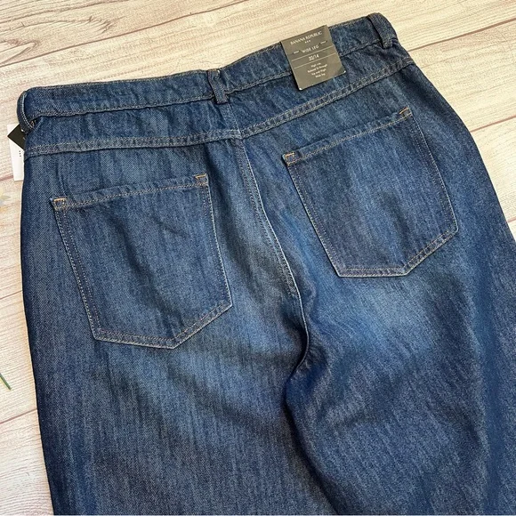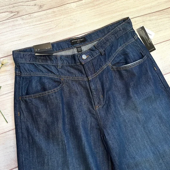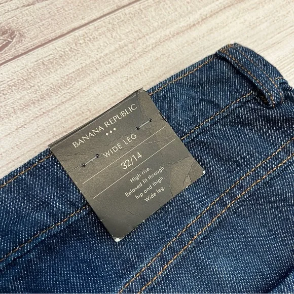 Banana Republic • New with tags• Dark wash• Size 32/14• High rise• Wide leg• Relaxed fit through hip and thigh• Four pockets• Belt loops• Button and fly zip•...