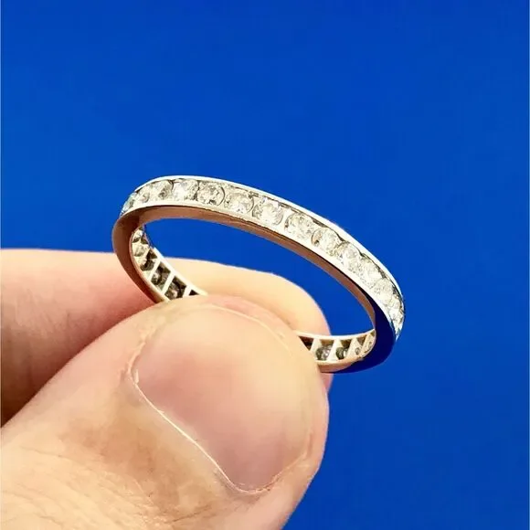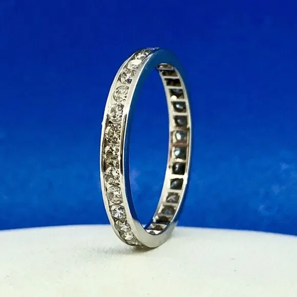 14K White Gold Channel Set Diamond Anniversary Eternity Stackable Band Ring