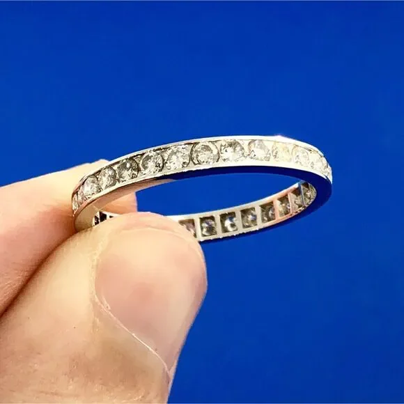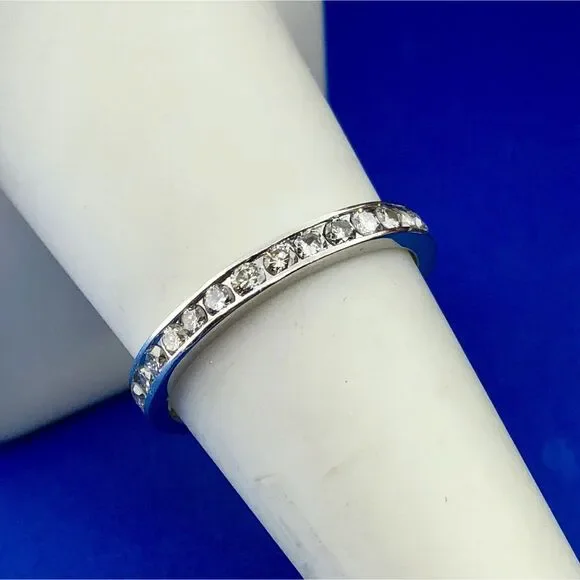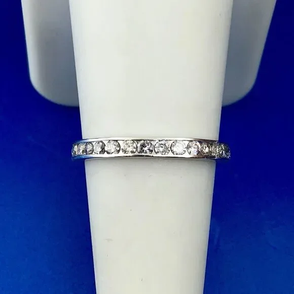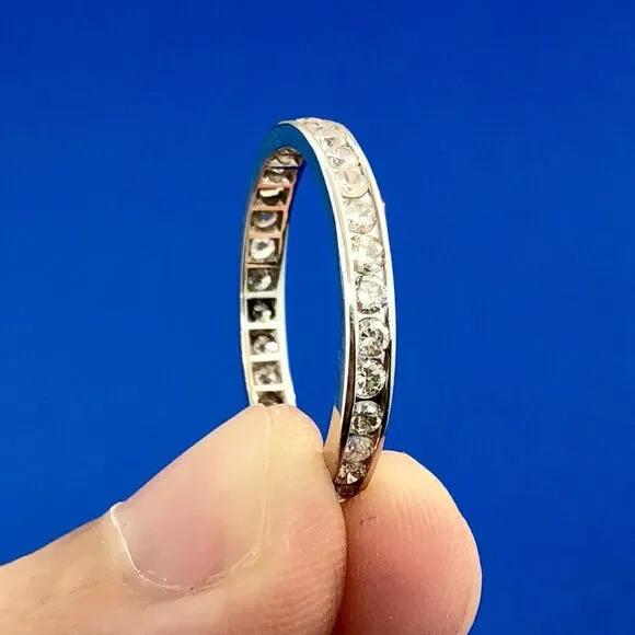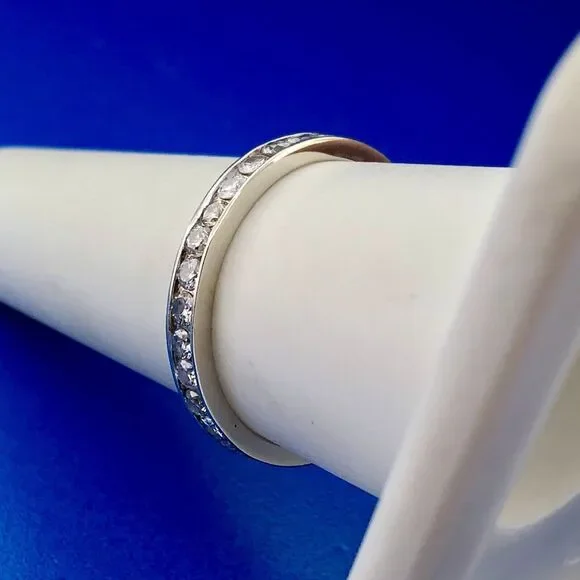 •14K White Gold Channel Set Diamond Anniversary Eternity Stackable Band Ring•Ring size: 7.75•Band width: 1/8"•Diamonds measure approximately 1.75 mm each•Diamond color:...