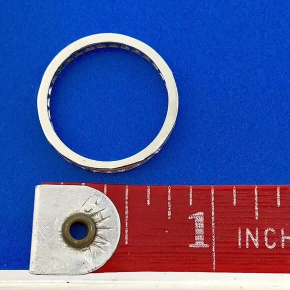 •14K White Gold Channel Set Diamond Anniversary Eternity Stackable Band Ring•Ring size: 7.75•Band width: 1/8"•Diamonds measure approximately 1.75 mm each•Diamond color: F-H•Diamond clarity: SI•Weight: 1.7 tgw•Marked: 14K•Condition: Great •G1178