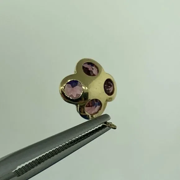 * Designer Mexico 14K Yellow Gold Pink Tourmaline Flower Stud Earrings* Length: 3/8"* Width: 3/8"* Pink Tourmaline measure approximately 4.65 mm each* Weight: 2.4 tgw* Marked:...