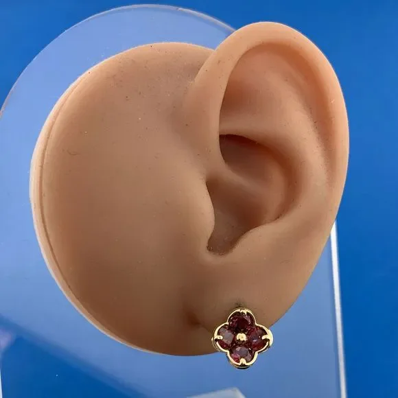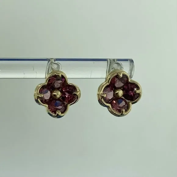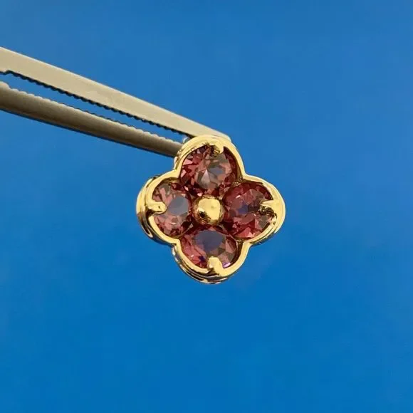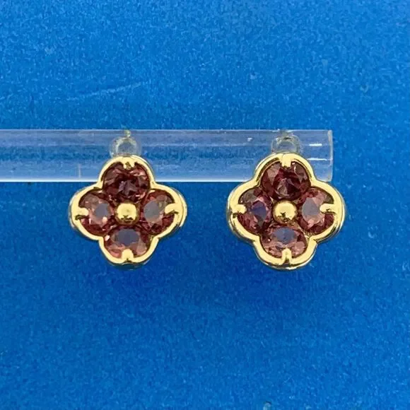 Designer Mexico 14K Yellow Gold Pink Tourmaline Flower Stud Earrings