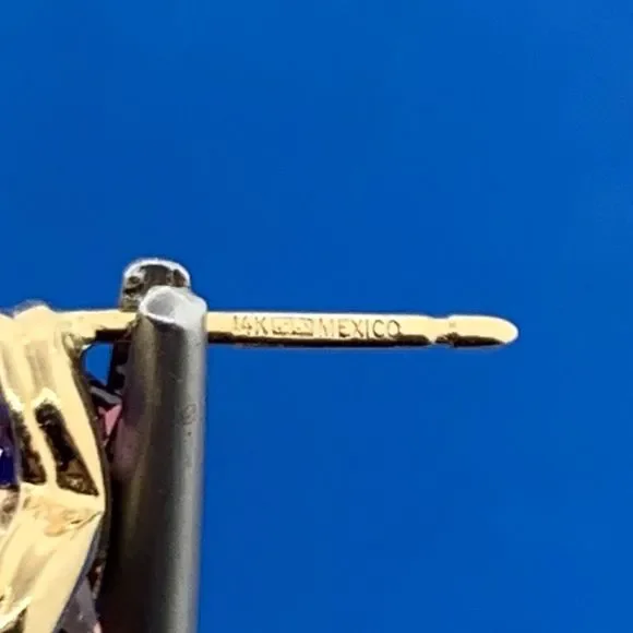 * Designer Mexico 14K Yellow Gold Pink Tourmaline Flower Stud Earrings* Length: 3/8"* Width: 3/8"* Pink Tourmaline measure approximately 4.65 mm each* Weight: 2.4 tgw* Marked: MEXICO * MAKERS MARK * 14K* Fastening: Not included* Condition: As pictured.* G3155