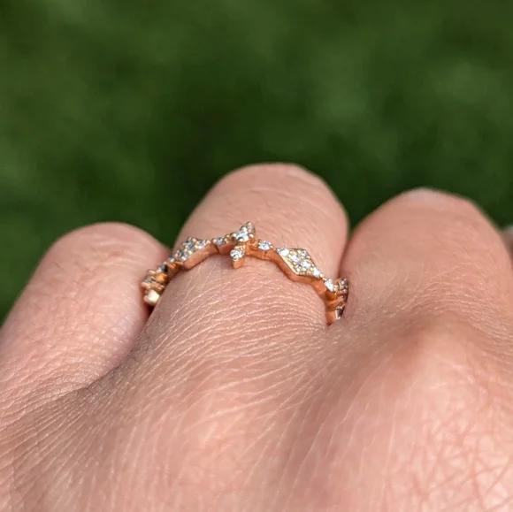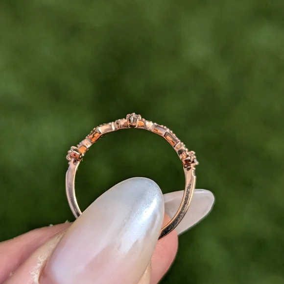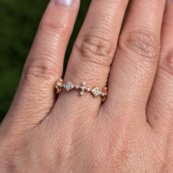 14 Karat Rose Gold Diamond Cross Art Deco Ring Band
