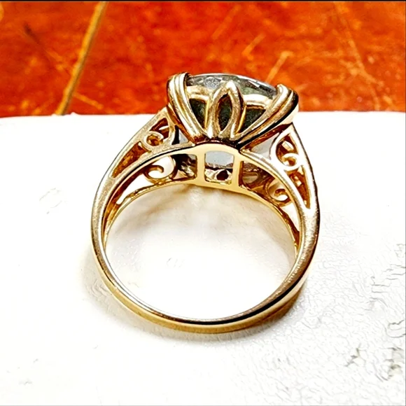 Elegant 10k gold ring featuring a stunning square-cut Mystic Topaz gemstone with vibrant shifting colors. The intricate filigree design adds a timeless touch to this beautiful...
