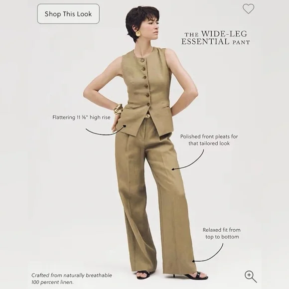 New without tags, comes in manufacturer packagingFits TRUE TO SIZE based on 471 customer reviewsClassic fit.High rise.This jean is designed with a full-length inseam.Easy through the hip and thigh, with a wide-leg.Front rise: 11 3/8"; 31" inseam; 23" leg opening (based on a size 6).The pant that takes after its name...We gave our top-rated trouser a bit of an upgrade with a slightly wider leg and a relaxed, uncuffed hem. Plus, these are crafted from lightweight, breathable 100 percent linen fabric that´s guaranteed to keep you looking and teeling cool.100% linen.Zip fly.Pockets.White colorway is lined.Please note: Pockets are basted and will need to be opened for use.Machine wash.Imported.Item BW528.