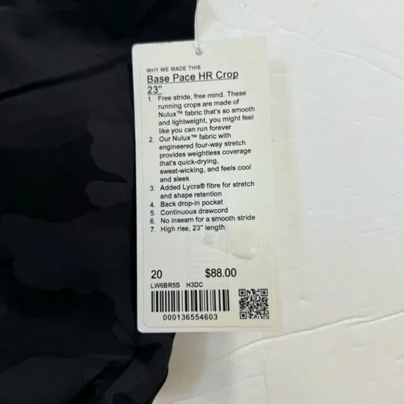 Lululemon NEW Base Pace High-Rise Crop 23" Camo Pants Legging Stretch Pocket Size 20 Plus SizeHeritage 365 Camo Deep Coal Multi - camouflage Neutral Current styleThese running...