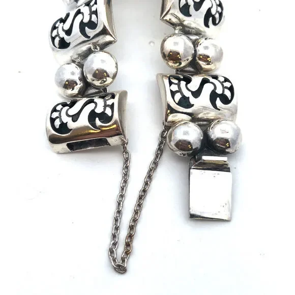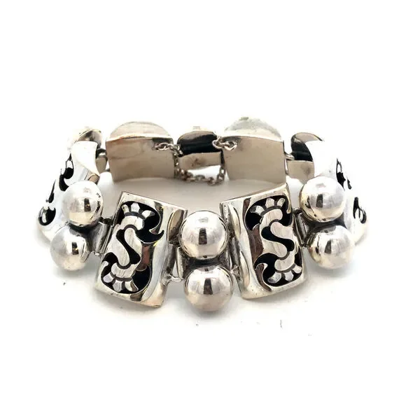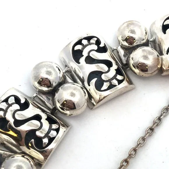 1960´s Taxco TPN Mexico 925 Sterling Silver Shadowbox Panel Statement Bracelet