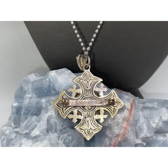 925 Sterling Silver JERUSALEM CROSS Pendant w/ 925 Chain 24”