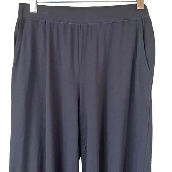 Eileen Fisher Fine Tencel Jersey Black Wide Leg Ankle Pants