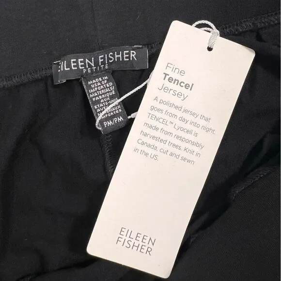 Eileen Fisher Fine Tencel Jersey Black Wide Leg Ankle PantsNew with tag!Details:Pull on styleCropped wide leg ankle lengthPocketsLyocell/elastaneElastic waistband Soft Jersey feelSize MP