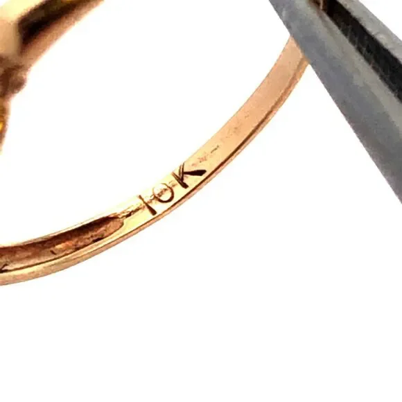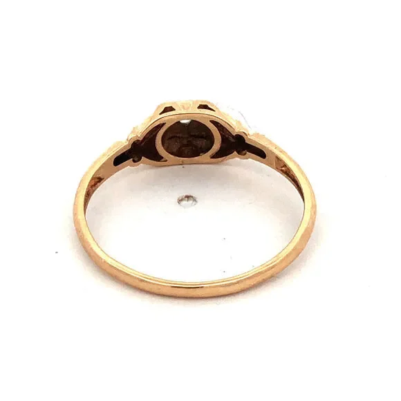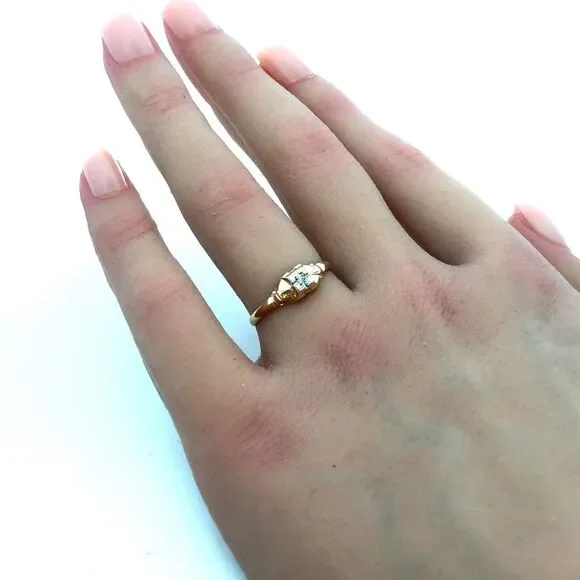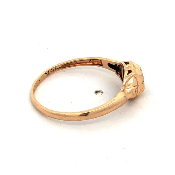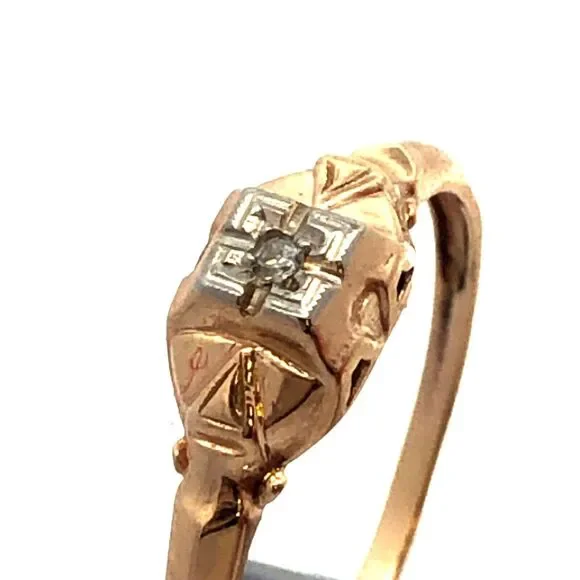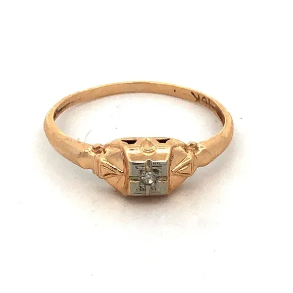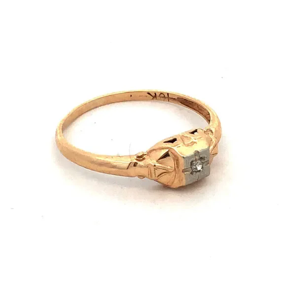 Vintage 10K Yellow Gold Round Diamond Solitaire Square Top Engagement Ring