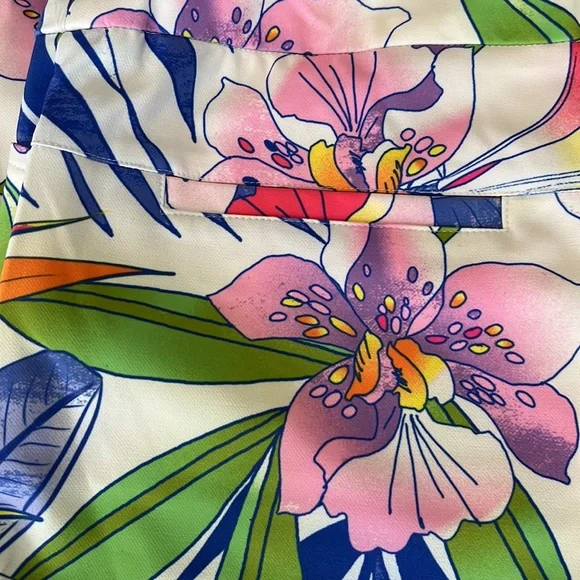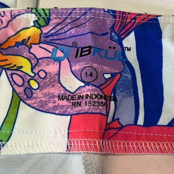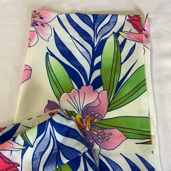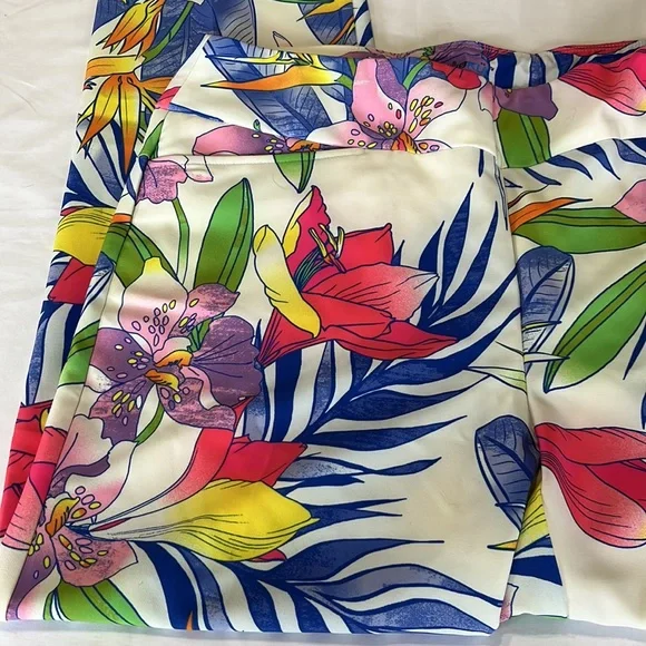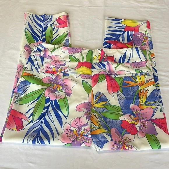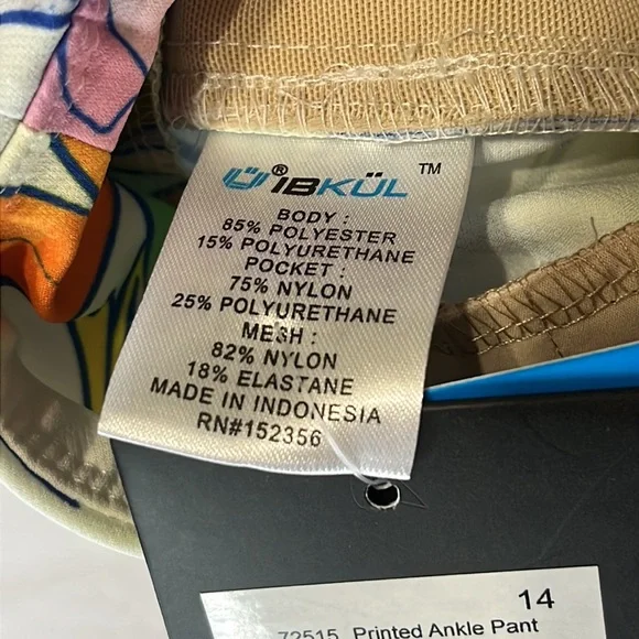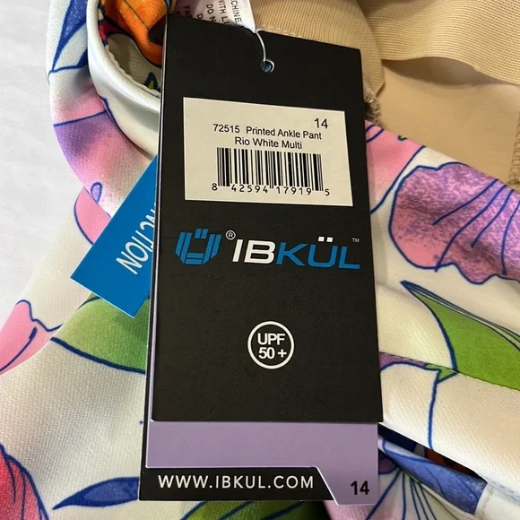 ABSOLUTELY STUNNING!!!IBKUL Printed Ankle Pant in Rio White Multi Size 14. NEW WITH TAGS!Features:Pull on designTummy control waistband for comfortable, slimming fit and feelBreathable, lightweight wrinkle-free fabric with stain-resistant finish4-way stretch construction allows pants to follow your shape and movements, Stain resistant functionOffers UPF 50+ protection from harmful sunlight to covered areas2 front angled pockets, 2 back pockets for convenienceTapered leg design with side slitsCare: machine wash cold with similar colors, tumble dry low. Do not dry cleanMaterial: 85% polyester, 15% spandexMeasurements laying flat-waist=17.5”, hips=21.5”, Rise=11”, Inseam=29”, leg opening =8”
