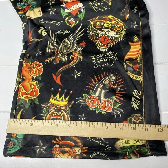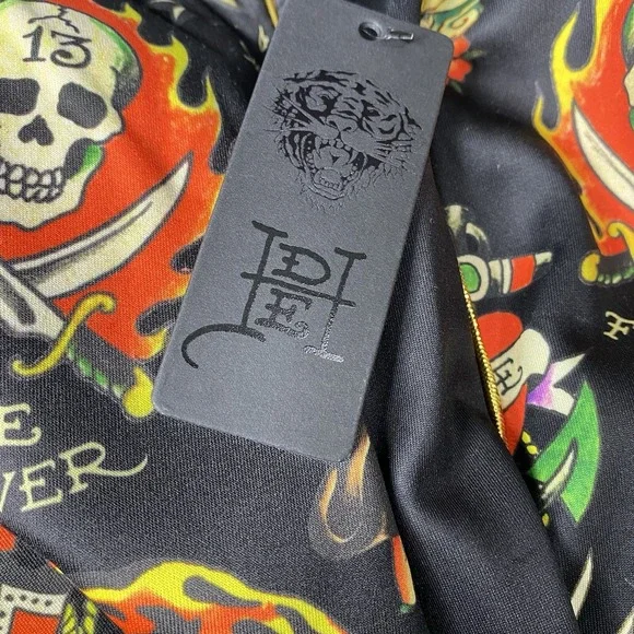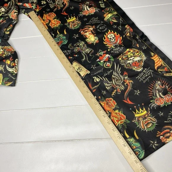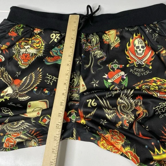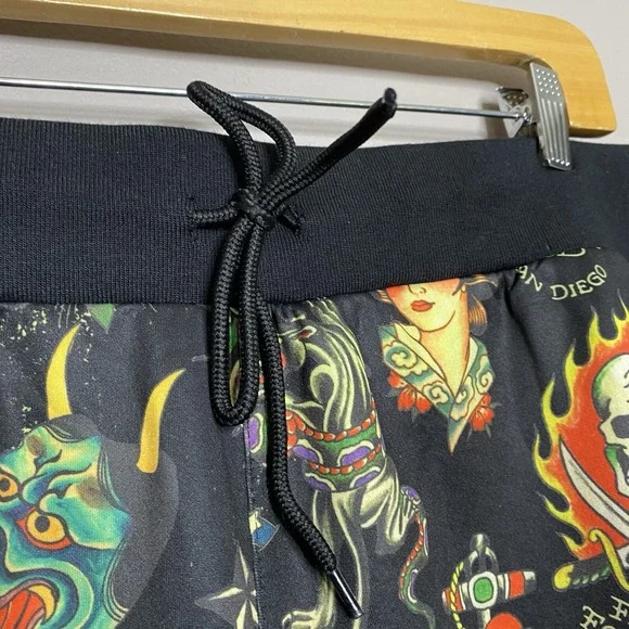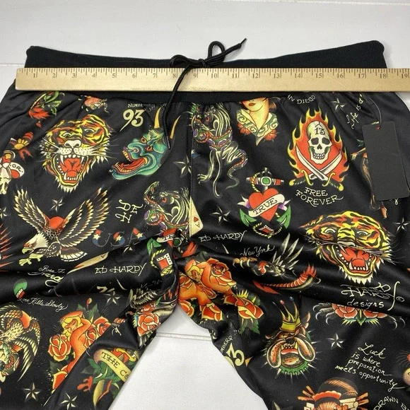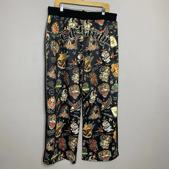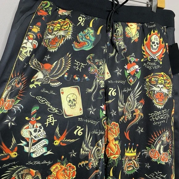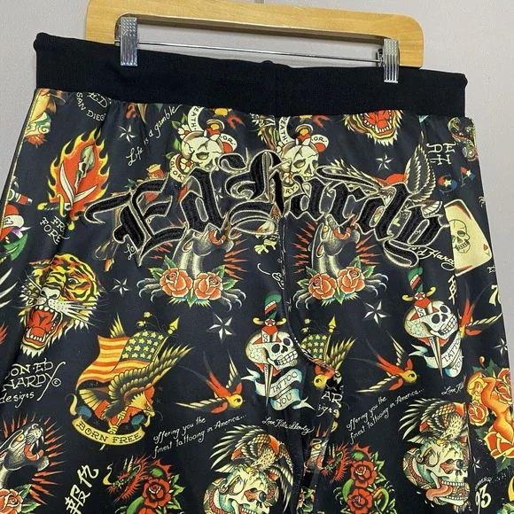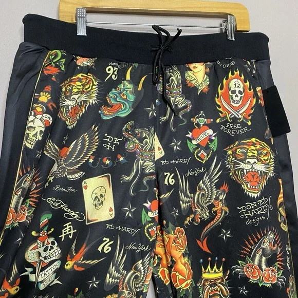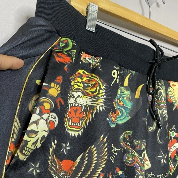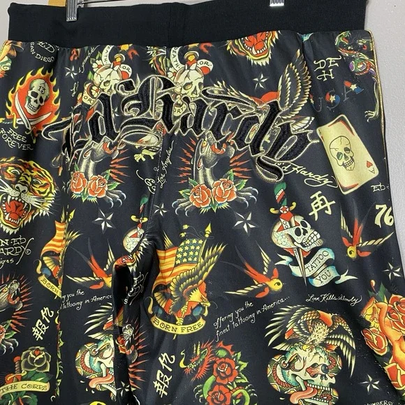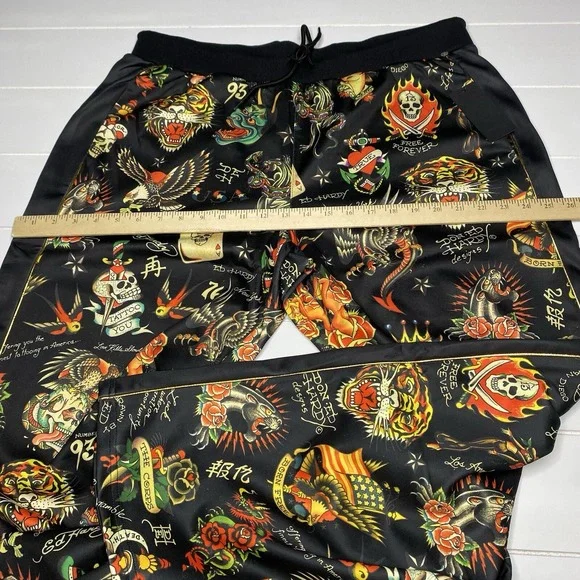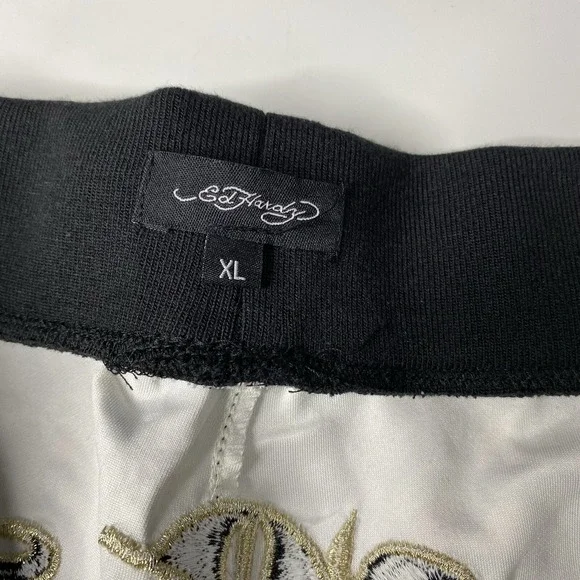 Ed Hardy Flashboard Track Pant Black Gold Embroidered Size XL Tiger Skull Print
