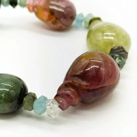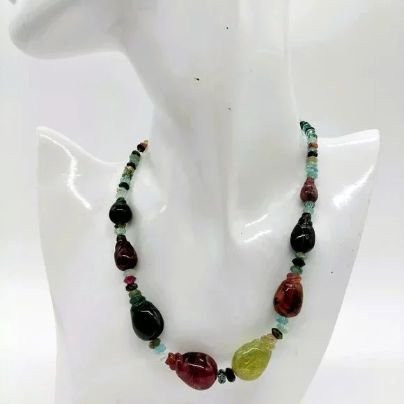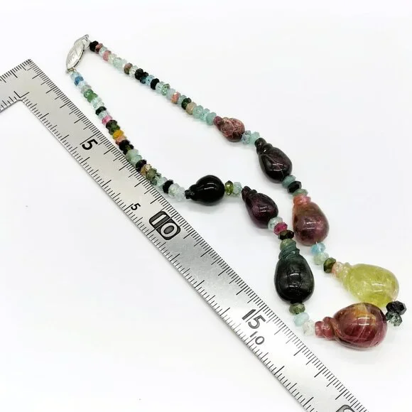 Jewelry Necklace Tourmaline Silver 1319472This is a beautiful multicolor tourmaline necklace.It is large and with all the beautiful colors will elevate any outfit you pair it with.Please see pictures for more details.The stones are natural and may have some veins and pits.