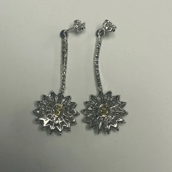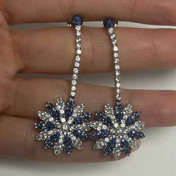 Suzy Levian Sterling Silver Blue Sapphire Created White Sapphire Floral Drop Earrings NWT Style # SZ13E0445A-BSSold as is, No returns