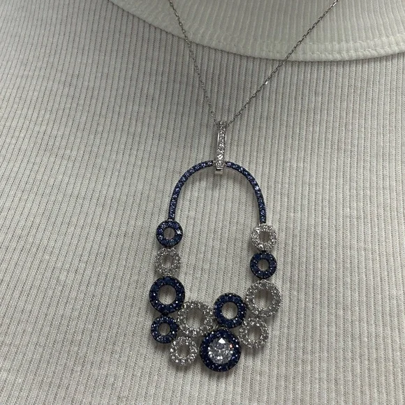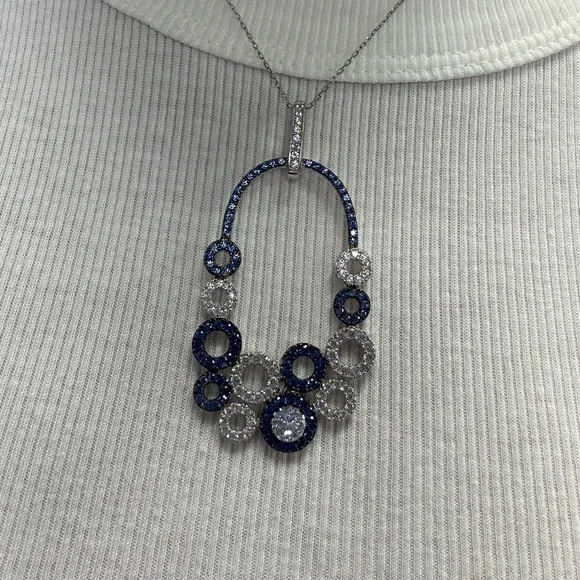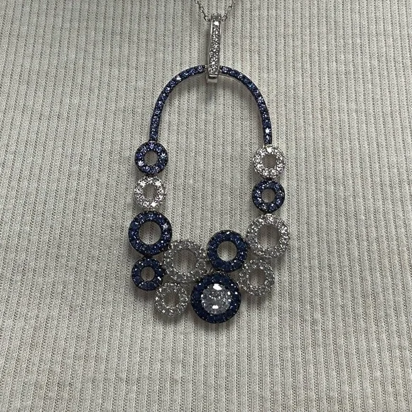 Suzy Levian Sterling Silver Blue White Sapphire Circle Pendant Necklace NWT