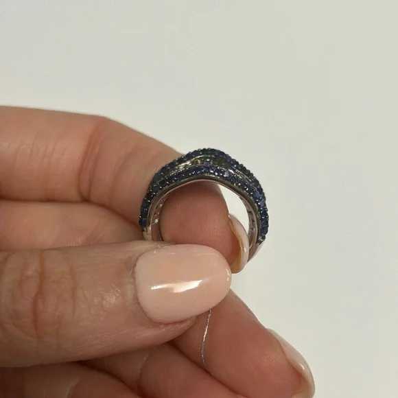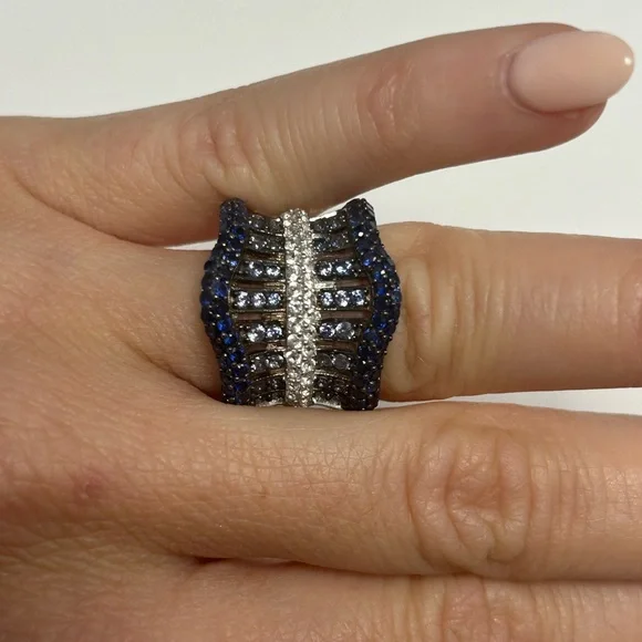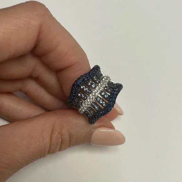 Suzy Levian Sterling Silver Blue Sapphire White Created Sapphire Ring NWT
