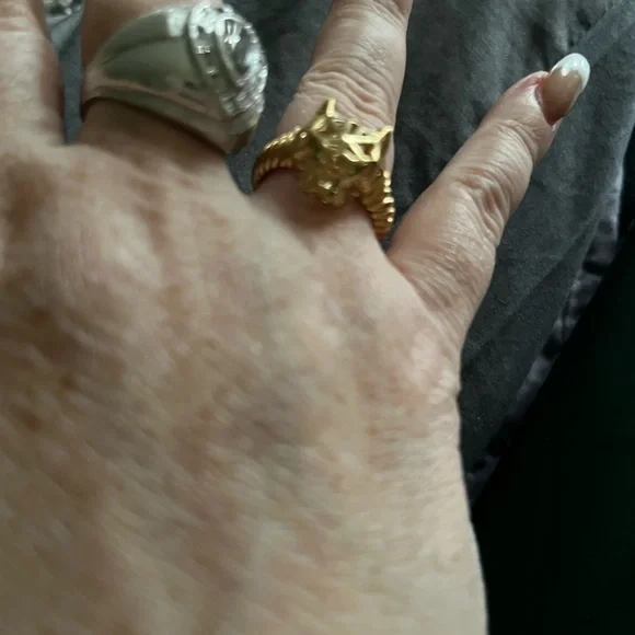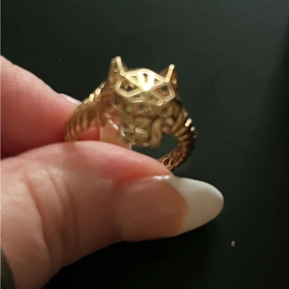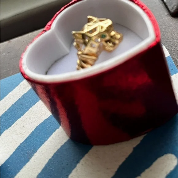Designer Style 14k Yellow Gold Panther Ring with Emerald Eyes. Comes with Ring Box. Substantial Ring. size 7 1/2 easily sizeable.