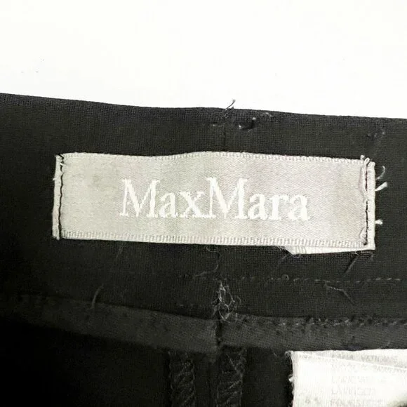 MaxMara Trouser Pant Women´s Timeless Lightweight Wool Blend Black Size US 12Excellent pre-owned condition. No visible flaws. Women´s Size: EU 42 - US 12Waist: 16.5”. Rise: 11.5”. Hip: 20". Inseam: 29”. Length: 40". Leg Opening: 7.5"* Measurements are approximate.- Classic fit- Mid-rise, straight leg, slightly tapered at ankle- Flat front- Zip fly with hook-and-eye closure, belt loops- Front and back pockets- Unlined- 84% wool, 8% polyester, 8% elastane- Dry cleanSorry, No Trades. Offers Welcome.