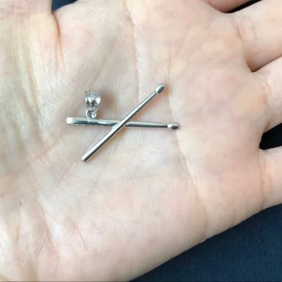Description: Solid 14K Gold 3D Drum Sticks Music Pendant Item No.:M301Metal type: 14K Solid Yellow Gold (also available in 10k Solid Gold)Metal color: Yellow Gold. (Also available...