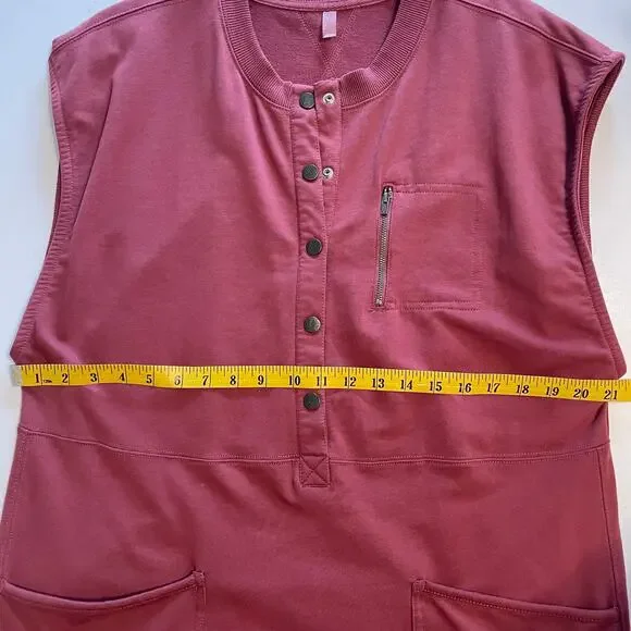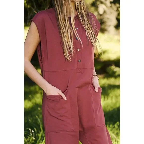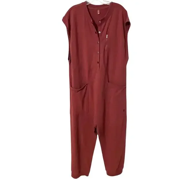 Free People FP Movement Every Day All Day Henley Jumpsuit Your new favorite go-to jumpsuit featured in a soft cotton fabrication and ankle-length style with Henley-inspired detailing and zippered chest pocket. This laidback one-piece is ultra-comfy and one that you’ll never want to take off.Solid Mauve Shapeless silhouette, ankle-length, pull-on styleSnap Placket, Henley StyleCap Sleeves Oversized Patch PocketsBanded,, Jogger-Style HemCotton & Polyester BlendSize MediumArmpit to Armpit: 21.5"Rise: 18"Inseam: 23.5"Gently used conditionNo holes, stains or flawsComes from a non-smoking homeTags: Playsuit, Romper, Pantsuit, Utility, Jumper, Jump Suit, Cute, Trendy, Fun, Boho, Bohemian, Minimalist, Minimal, Sporty, Capsule Wardrobe, Contemporary, Slouchy, Loose, Baggy, Comfortable