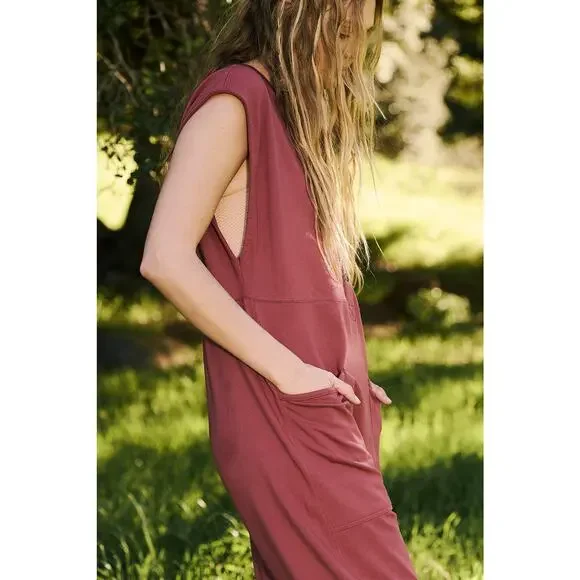 FP Movement All Day Everyday Henley Jumpsuit Womens Medium Mauve Soft Cotton