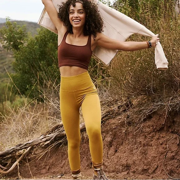 FREE PEOPLE High-Rise 7/8 Length Good Karma Leggings Color-Honey Mallow Size-XS/S. No exterior logo.These ultra-flattering leggings transition to brunch, Bikram and beyond.The Fit: High-rise waist; 7/8 cropThe Feel: Ultra-soft; holds-you-in waistThe Features: Ribbed knit design; SPF 30 UV protectionWhy we ♡ them: They´re a wear-everyday, tried-and-true faveFP MovementA destination for the life well-lived, Free People Movement offers performance-ready activewear, practice-perfect styles and beyond-the-gym staples. We believe in the power of community, in supporting and lifting each other up and always #movingtogether.Care/ImportHand Wash ColdMade in the USAMeasurements for size extra small/ smallInseam: 23 inWaist: 22 inRise: 9.25 inHips: 26 in .NWOT