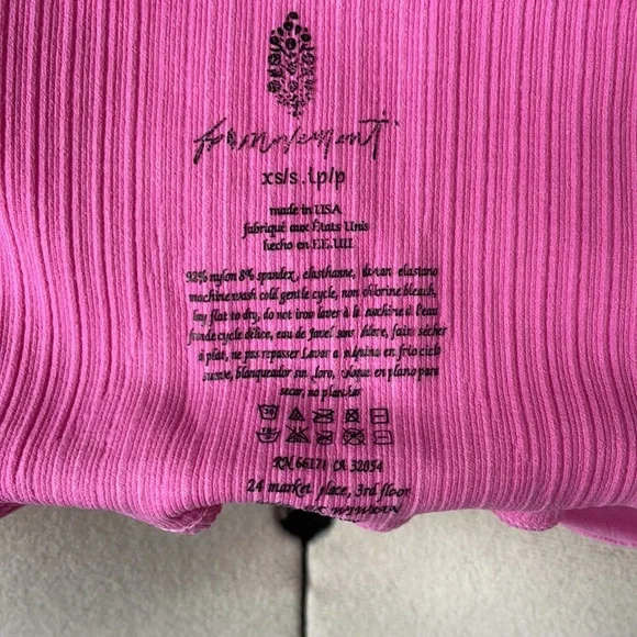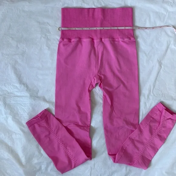 FREE PEOPLE High-Rise 7/8 Length Good Karma Leggings Color-Azalea Size-XS/S. No exterior logo. These ultra-flattering leggings transition to brunch, Bikram and beyond.The Fit: High-rise waist; 7/8 cropThe Feel: Ultra-soft; holds-you-in waistThe Features: Ribbed knit design; SPF 30 UV protectionWhy we ♡ them: They´re a wear-everyday, tried-and-true faveFP MovementA destination for the life well-lived, Free People Movement offers performance-ready activewear, practice-perfect styles and beyond-the-gym staples. We believe in the power of community, in supporting and lifting each other up and always #movingtogether.Care/ImportHand Wash ColdMade in the USAMeasurements for size extra small/ smallInseam: 23 inWaist: 22 inRise: 9.25 inHips: 26 in Smoke free home. Fast shipping. NWOT
