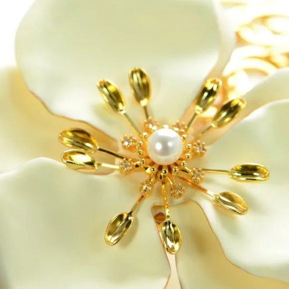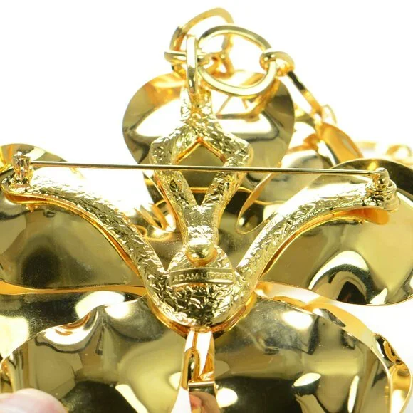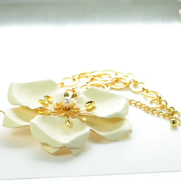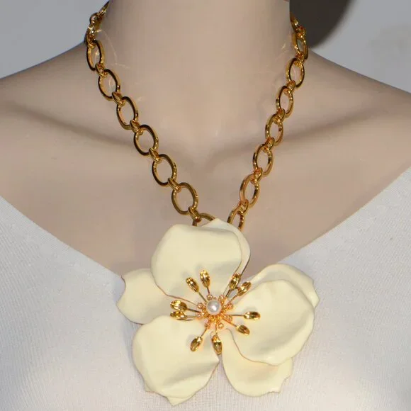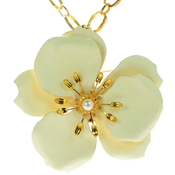 24-karat yellow gold plating. Hand-painted resin rose petals. Swarovski® crystals in stemmed settings. 100% Authentic guaranteed.New without tagsGoldtone platingApprox. 19"L W/3.5" extenderPendant/Pin: 4"LMade in USA.