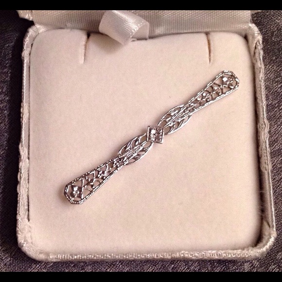 Ladies New 14KT Plumb White Gold Brooch.