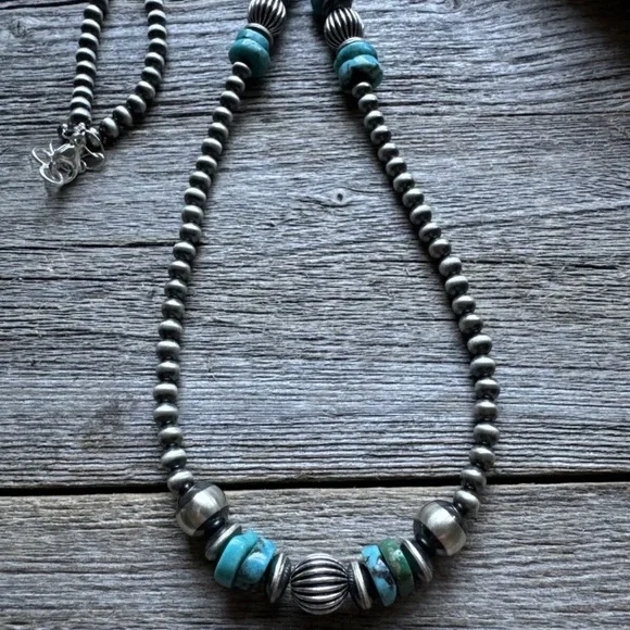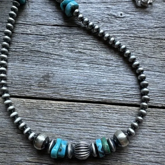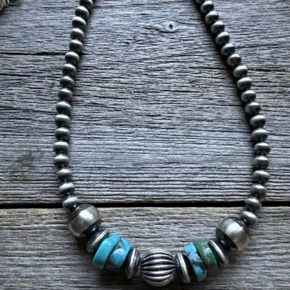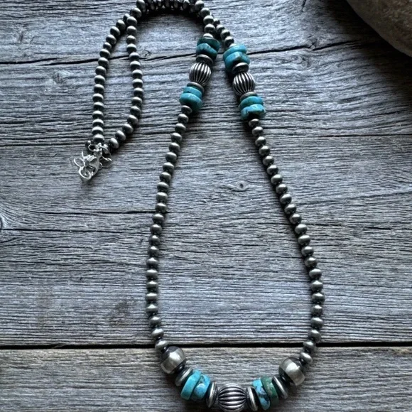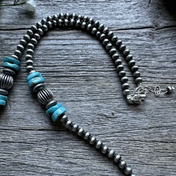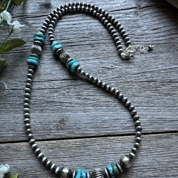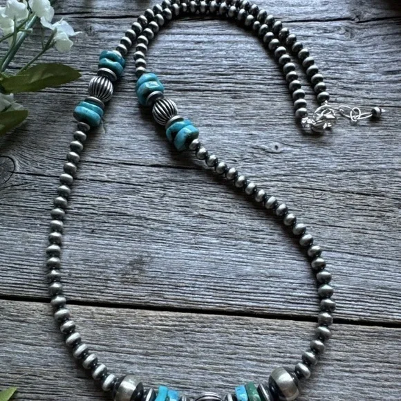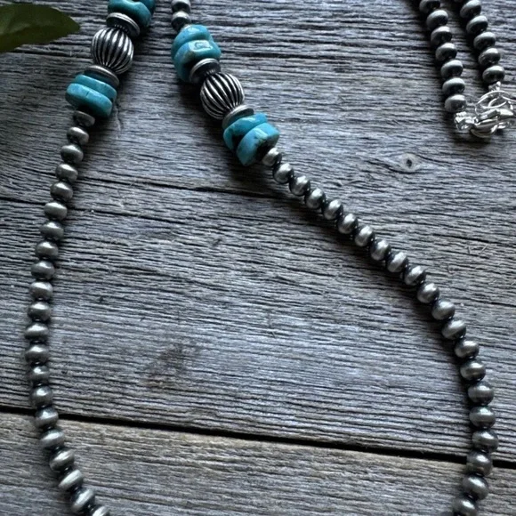 Sterling Silver Blue Turquoise W Pearls Bead Necklace. 24 inchBest Offers Accepted!