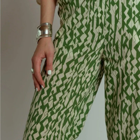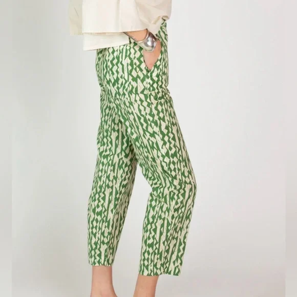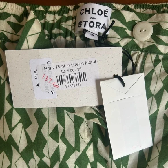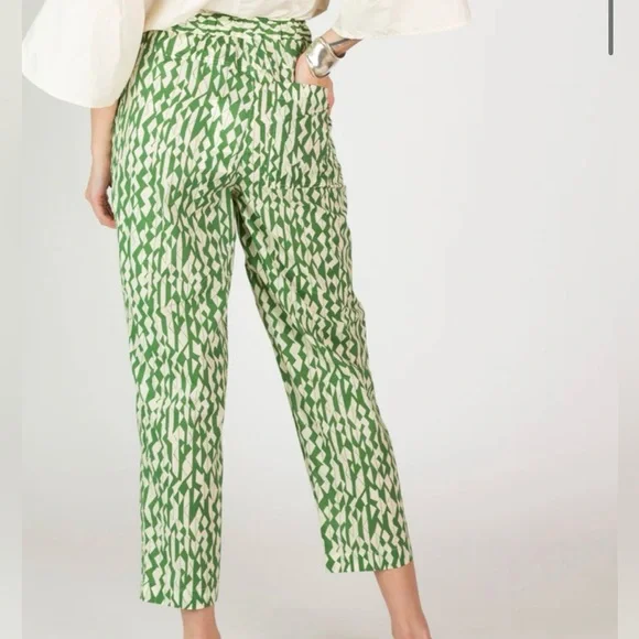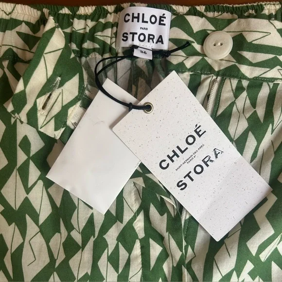 Chloé Stora 100% cotton Rony Pantsize 36Verbena green & white print