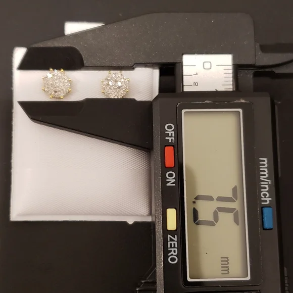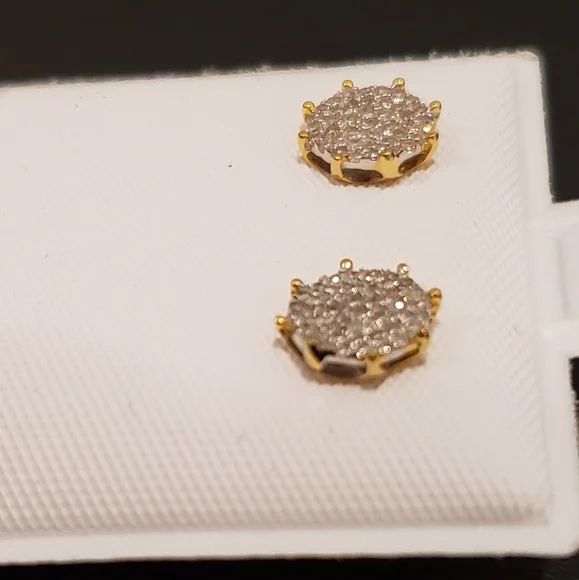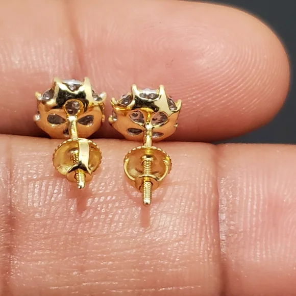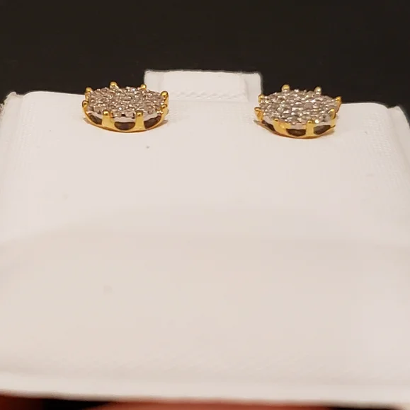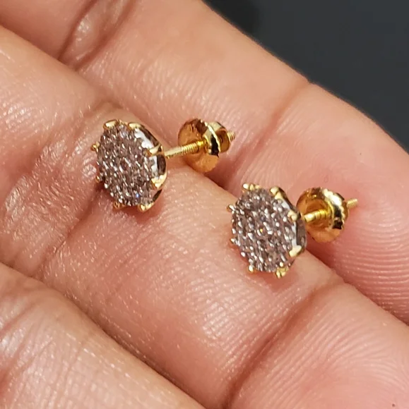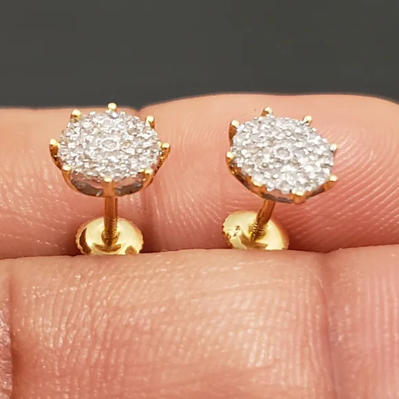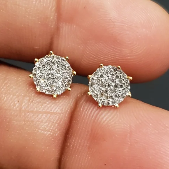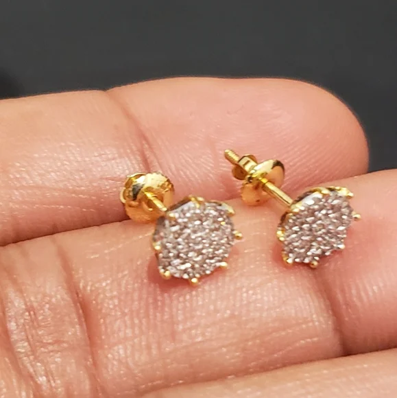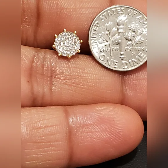 10kt GoldDiamond Studs Gold weight 1.06gmsDiamond 0.25ctsWidth 7.5mmStones are Natural DiamondsPlease assume the size as compared to Dime.100% Authentic 10kt Gold with Natural Diamonds.
