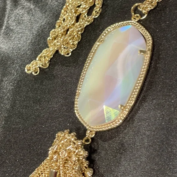 This is an older Kendra Scott Rayne (no tarnish) with a very rare iridescent agate stone.The stone was from one of the luxe Jamie necklaces, so it is not an exact fit in the...