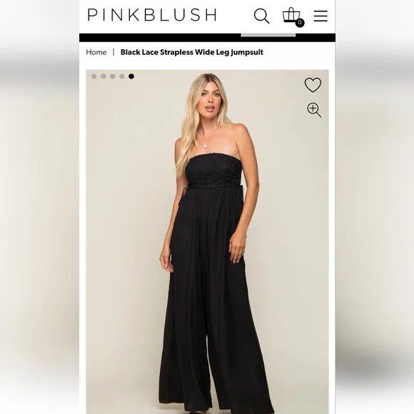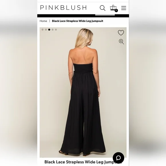 this black strapless jumpsuit from the brand Mustard Seed is new with tags and is a size large. it had lace detailing on the chest and ties at the sides of the waist.