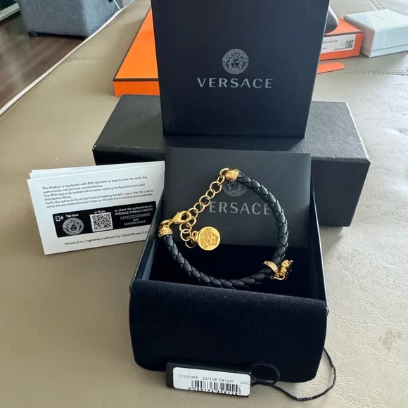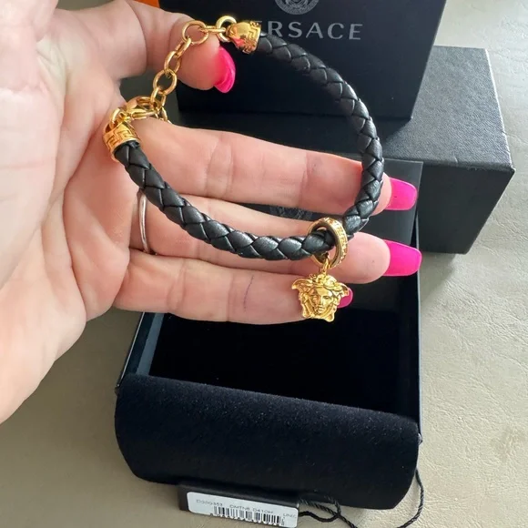 Versace black leather Medusa bracelet Authentic