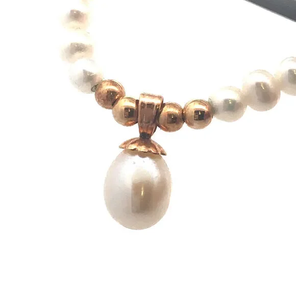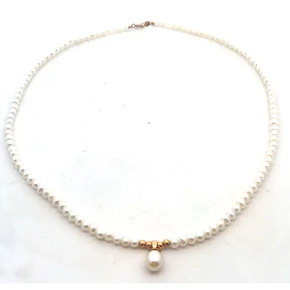 Designer 14K Yellow Gold White Pearl Beaded Teardrop Pendant Necklace