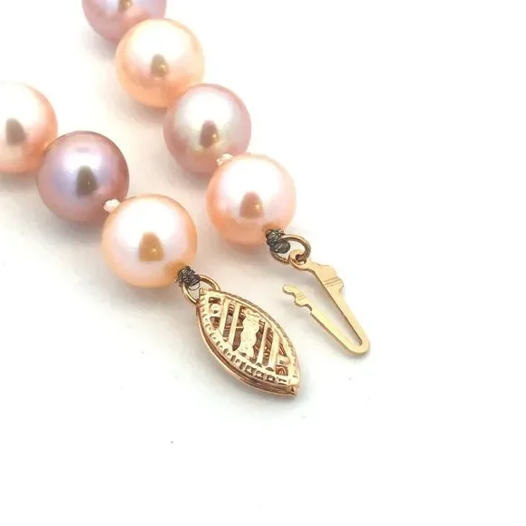 Designer 14K Yellow Gold Pink Round Pearl Beaded Necklace