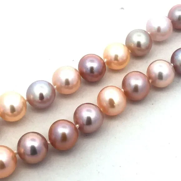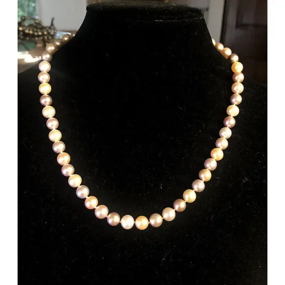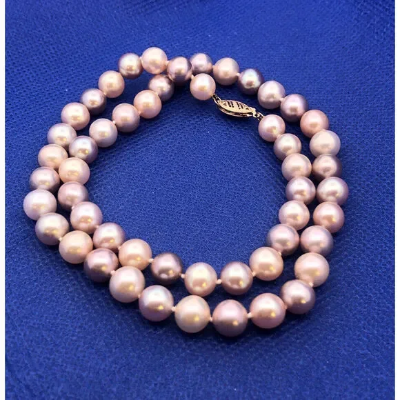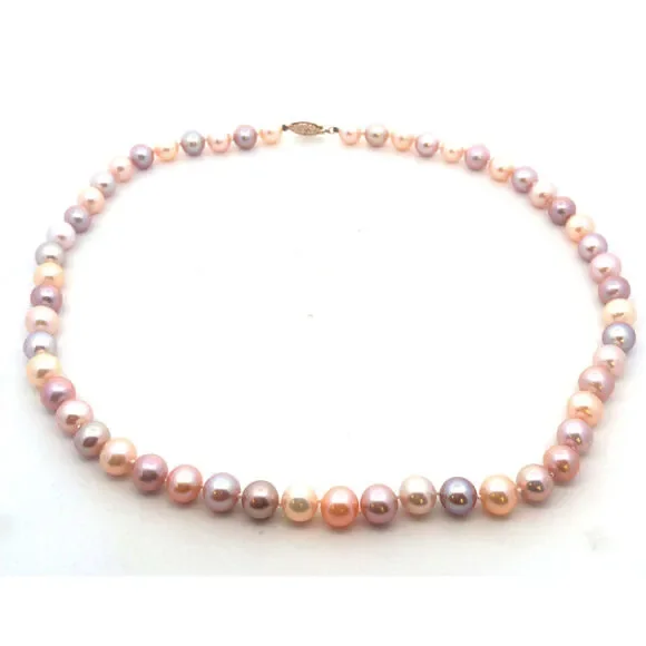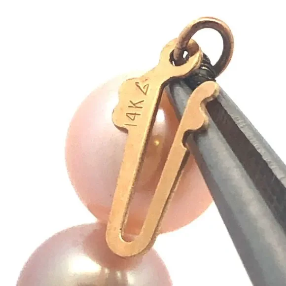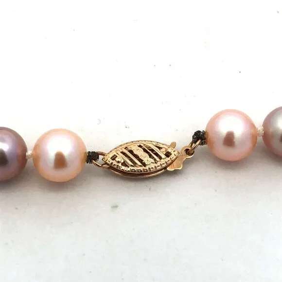 * Designer 14K Yellow Gold Pink Round Pearl Beaded Necklace* Length: 18"* Width: 5/16"* Weight: 35.9 tgw* 53 Round Pearls measures approximately 7.8 mm each* Marked: 14K * Makers Mark* Condition: As pictured. * OH985* G4438