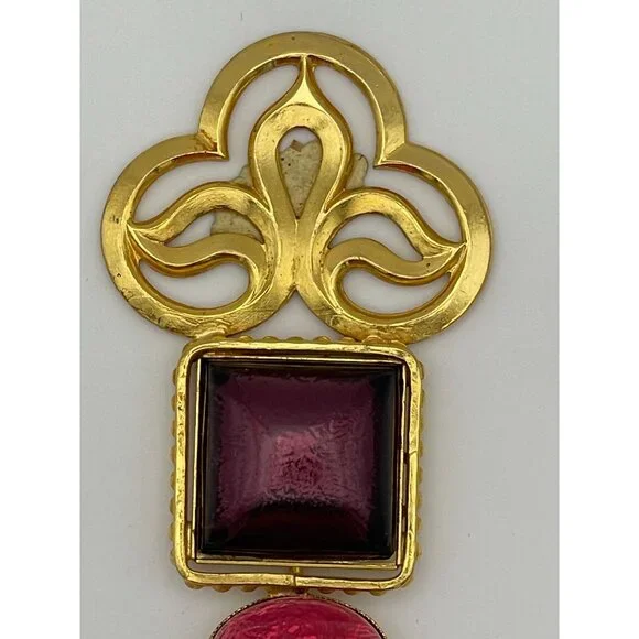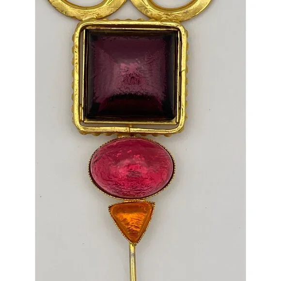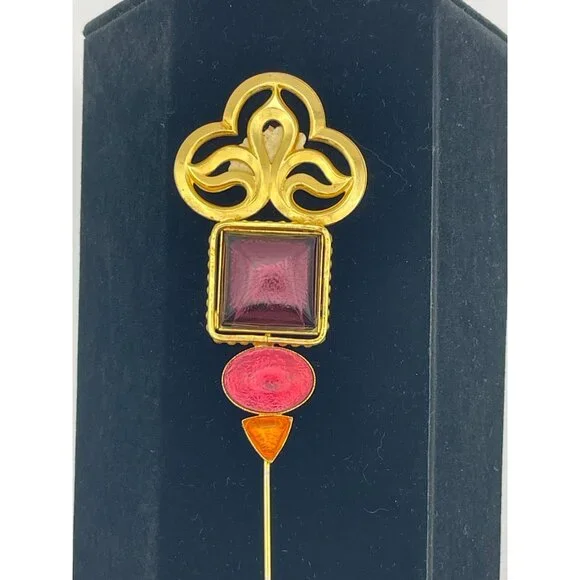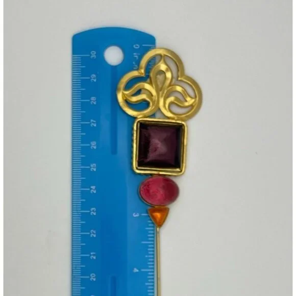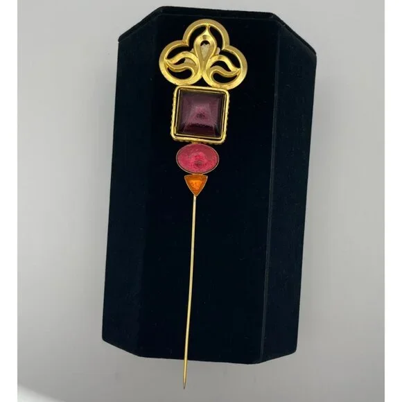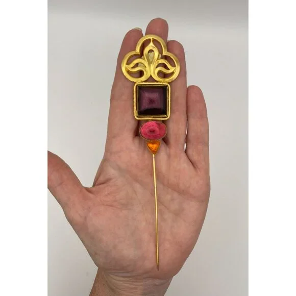 Philippe Ferrandis Stick Hat Pin Gold Tone GripoixPurple Red Pink Orange Paris