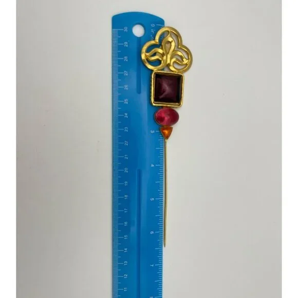 This Philippe Ferrandis Stick Hat Pin emanates Parisian elegance with its gold-tone and Gripoixvivid mix of purple, red, pink, and orange. Perfect for women who love unique...