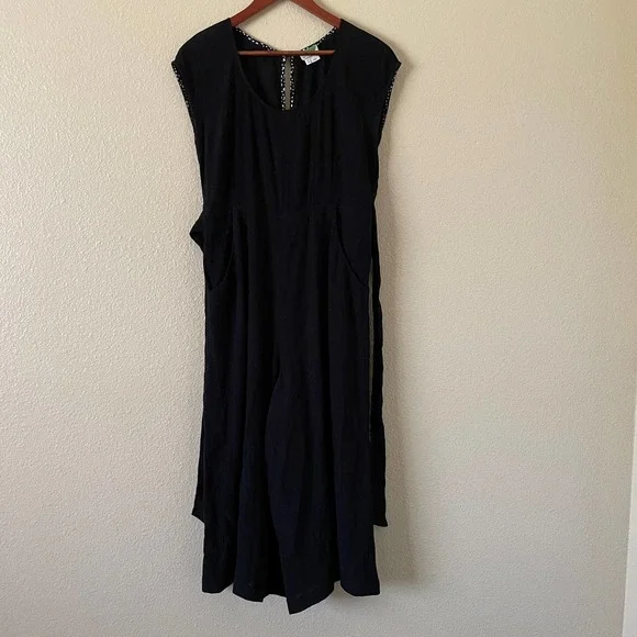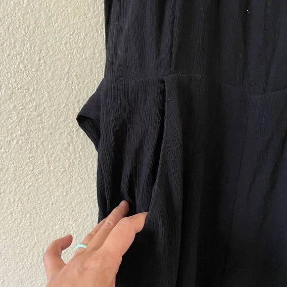 Anthropologie Abbey crepe wide leg crop scoop neck jumpsuitscoop neckwide legcrepe look shortsleeve/sleeveless tie around the waistkey hole at the backpockets on each sideWaist 16 1/2”Chest 20”Inseam 20 1/2”
