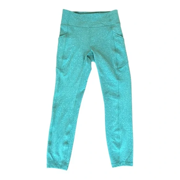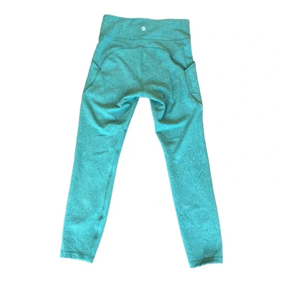 Lululemon Wunder Train High-Rise Tight w Pockets 25" EUC Never worn No snags, no flaws, no stains, look brand new Blaze Maldives Green Size 6Snug waist Never worn EUC Rise 9 1/4”Waist 12 1/2”Inseam 25” everlux™ fastest-drying fabricBreathableSweat-wickingFour-way stretchSupportiveFeels cool and sleek on the inside, soft and brushed on the outsideAdded Lycra® fibre for stretch and shape retentionfeaturesTwo side drop-in pockets fit your phoneHidden pocket in the waistband has space for your card and keysWaistband drawcord keeps your leggings in place so you don’t have to pull them up