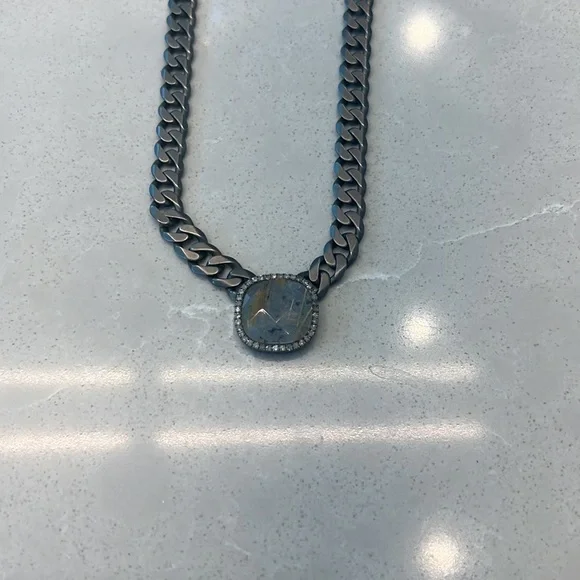 Italian silver and diamond chain necklace with gorgeous stones and sparkle! 925 markings and in pristine condition.